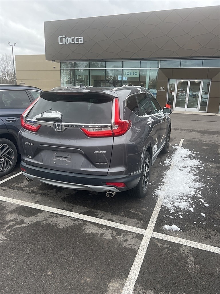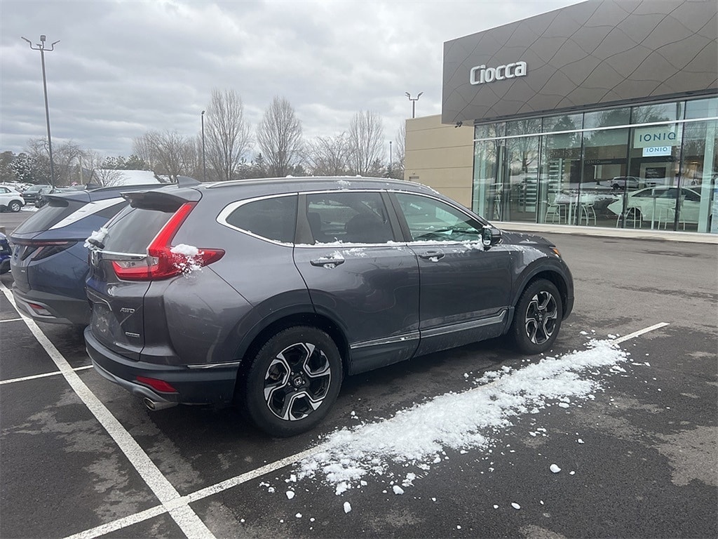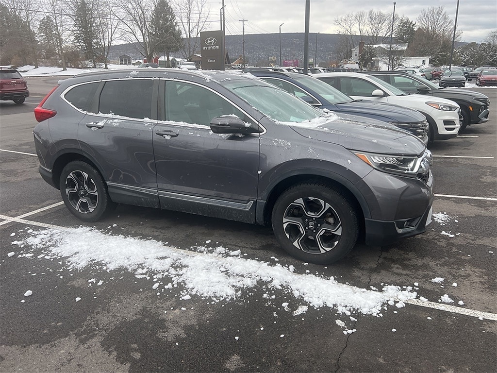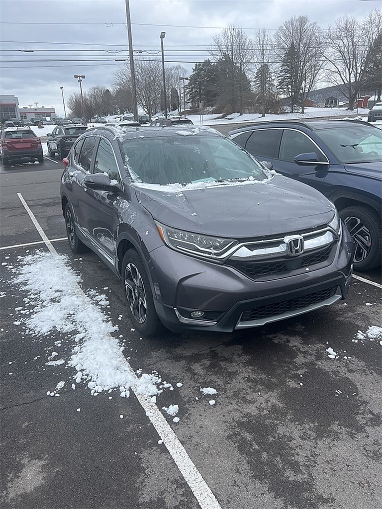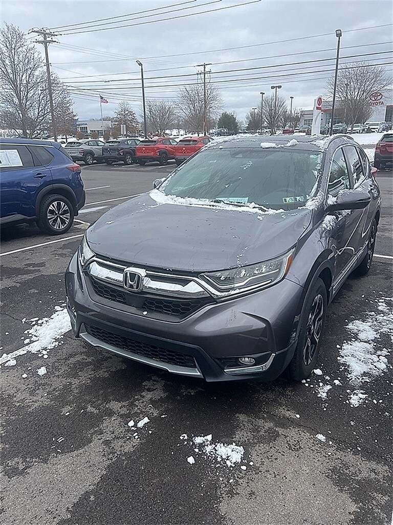 2019 Honda CR-V Touring CR-V Touring, 4D Sport Utility, AWD, Modern Steel, Gray Leather, 18" Alloy Wheels, 4-Wheel Disc Brakes, ABS brakes, Air Conditioning, Alloy wheels, Apple CarPlay/Android Auto, Auto High-beam Headlights, Auto-dimming Rear-View mirror, Automatic temperature control, Blind Spot Information (BSI) System warning, Brake assist, Compass, Delay-off headlights, Electronic Stability Control, Exterior Parking Camera Rear, Forward collision: Collision Mitigation Braking System (CMBS) + FCW mitigation, Four wheel independent suspension, Front Bucket Seats, Front dual zone A/C, Front fog lights, Fully automatic headlights, Heated door mirrors, Heated Front Bucket Seats, Heated front seats, Illuminated entry, Lane departure: Lane Keeping Assist System (LKAS) active, Leather Seat Trim, Memory seat, Navigation system: Honda Satellite-Linked Navigation System, Panic alarm, Power door mirrors, Power driver seat, Power Liftgate, Power moonroof, Power passenger seat, Power windows, Rain sensing wipers, Rear seat center armrest, Remote keyless entry, Security system, Speed control, Speed-sensing steering, Speed-Sensitive Wipers, Split folding rear seat, Steering wheel mounted audio controls, Telescoping steering wheel, Tilt steering wheel, Traction control, Turn signal indicator mirrors.