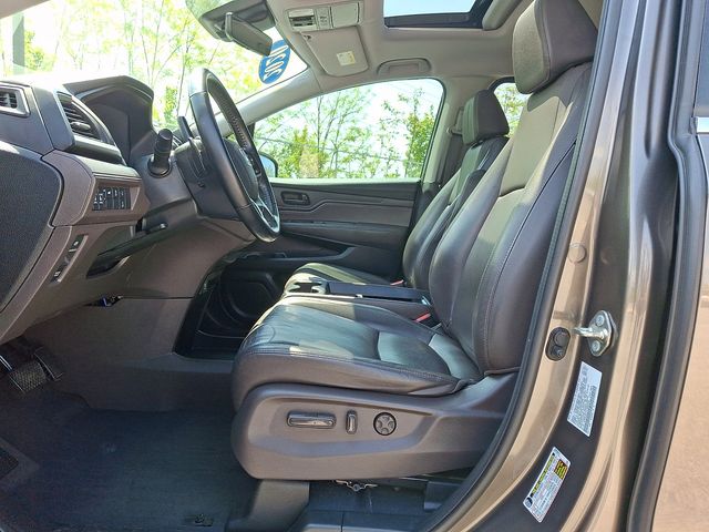 Odyssey EX-L, FWD, Mocha w/Leather Seat Trim, 3rd row seats: split-bench, Apple CarPlay/Android Auto, Auto High-beam Headlights, Auto-dimming Rear-View mirror, Automatic temperature control, Blind Spot Information (BSI) System warning, Exterior Parking Camera Rear, Forward collision: Collision Mitigation Braking System (CMBS) + FCW mitigation, Front dual zone A/C, Fully automatic headlights, Heated front seats, Illuminated entry, Lane departure: Lane Keeping Assist System (LKAS) active, Memory seat, Power Liftgate, Power moonroof, Remote keyless entry, Steering wheel mounted audio controls.