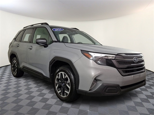 2025 Subaru Forester Premium Accident Free, Android Auto, Automatic High Beams, AWD, Bluetooth, Local Trade, One Owner, Apple Car Play, Rear Back-up Camera, Forester Premium, 2.5L 4-Cylinder DOHC 16V, AWD, All-Weather Floor Liners, AM/FM radio: SiriusXM with 360L, Auto High-beam Headlights, Auto-Dimming Mirror w/Compass & HomeLink, Automatic temperature control, Brake assist, Cargo Tray, Convenience Package #1, Electronic Stability Control, Emergency communication system: MySubaru Safety (3-year free trial), Exterior Parking Camera Rear, Front fog lights, Fully automatic headlights, Heated Front Bucket Seats, Power driver seat, Power moonroof: Panoramic, Premium Textured Cloth Upholstery, Radio: Subaru 11.6" Multimedia Plus System, Standard Model, Tachometer, Telescoping steering wheel, Tilt steering wheel, Trip computer, Wheels: 17" x 7.0 J Dark Metallic Aluminum-Alloy.